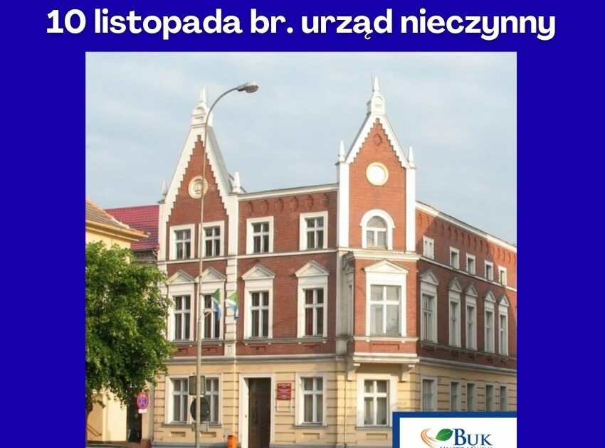 Informujemy, że 10 listopada 2025 r. Urząd Miasta i Gminy w Buku będzie nieczynny.