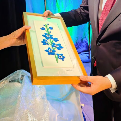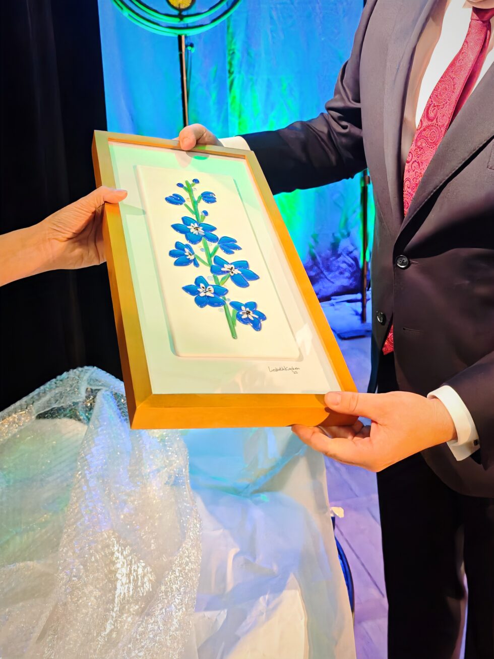Burmistrz Paweł Adam, w imieniu całej społeczności gminnej wręczył burmistrzom partnerskich gmin grawertony ze słowami podziękowania za dotychczasową współpracę. Niemniej wymowny prezent wręczyła delegacja holenderska, która ofiarowała nam niemniej wymowny prezent – cebulki kwiatowe w barwach niebiesko-białych, czyli w kolorach Sint-Michielsgestel. Jest ich tyle, że mogą stworzyć piękny kwietnik na powierzchni około dwudziestu metrów kwadratowych. Ponadto, na zlecenie holenderskiej gminy został wykonany ręcznie wyrabiany witraż z kwiatami, który wręczyła obecna na uroczystości autorka pracy.