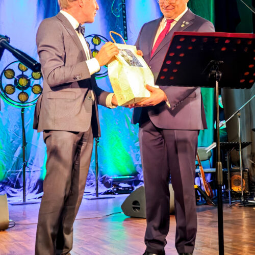 I jeszcze liczne słowa podziękowań. Burmistrz naszej gminy dziękował swoim współpracownikom za przygotowanie tego wspaniałego jubileuszu; organizacjom, stowarzyszeniom i wszystkim mieszkańcom zaangażowanym we współpracę; również żonie Beacie, która obecna była na spotkaniu. Dziękowali też między innymi sportowcy, harcerze; Anna Hoevenaars-Gonstal za gościnność i wyjątkowe wyróżnienie, a najlepszym tego podsumowaniem było „Sto lat”, które zagrał Piotr Goroński na akordeonie. Wspaniałe chwile wzruszenia i wdzięczności…