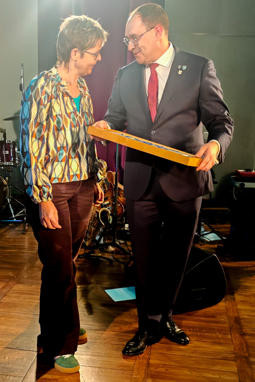 W ramach uroczystości, którą poprowadziła Anna Krzemińska, od lat zaangażowana we współpracę z gminami partnerskimi, odbył się też koncert Zespołu Kameralnego „Amici Canti” pod kierownictwem Leszka Górki wraz z Filip Chojnacki Quinet. Artyści wystąpili z repertuarem znanych polskich i światowych przebojów, takich jak na przykład „What a Wonderful Life” z repertuaru Louisa Armstronga czy „Piosenka jest dobra na wszystko” Kabaretu Starszych Panów. Naszym gościom tak bardzo przypadł do gustu wybór repertuaru oraz wykonanie, że oklaskami i na stojąco prosili o bis.
