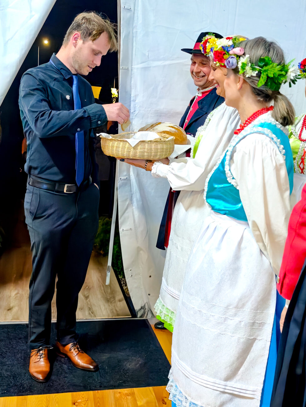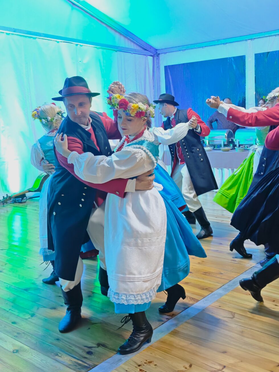 Na zakończenie wizyty zagranicznych delegacji w naszej gminie została przygotowana biesiada – na wzór staropolskich tego typu spotkań. Zespół Folklorystyczny „Złote Kłosy” przywitał gości chlebem i solą, a potem wystąpił – pokazując piękno i różnorodność polskiego folkloru. Kapela Zbąszyniacy na czele z Karolem Hołodem wprawiła zebranych w wyśmienity – iście biesiadny – humor, a w menu znalazły się staropolskie potrawy, takie jak na przykład żurek czy placek drożdżowy, które wszystkim bardzo smakowały.