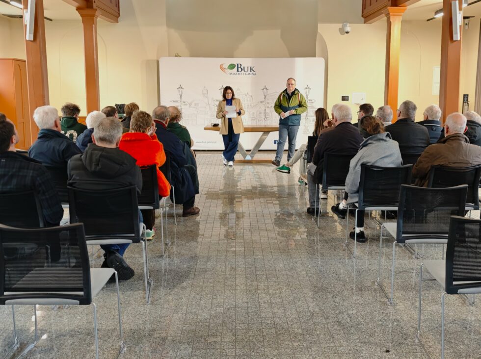 Zostali też zaproszeni do Urzędu Miasta i Gminy Buk, gdzie mówiono między innymi o rozwoju gminy oraz inwestycjach, które w większości udaje się zrealizować dzięki dofinansowaniom zewnętrznym. Goście zwiedzili urząd, zapoznali się z poszczególnymi referatami i rozmawiali z pracownikami. Po spotkaniu było pamiątkowe zdjęcie na schodach Urzędu MiG Buk, a dalej objazd po gminnych inwestycji. Goście mieli okazję zobaczyć zintegrowany węzeł przesiadkowy, Wiejski Dom Kultury w Dobieżynie, stadion w Buku, gdzie spotkali się z Prezesem MKS „Patria” Jakubem Tonderem, strefę Aktywizacji Gospodarczej – przedsiębiorcy z Holandii byli z wizytą w firmie Lars, plażę Niepruszewo oraz w gospodarstwie rolnym państwa Lehmannów w Otuszu.
