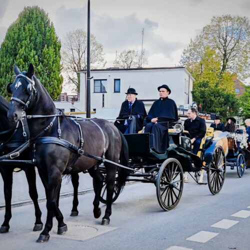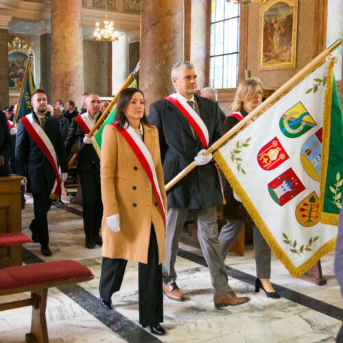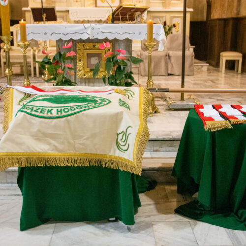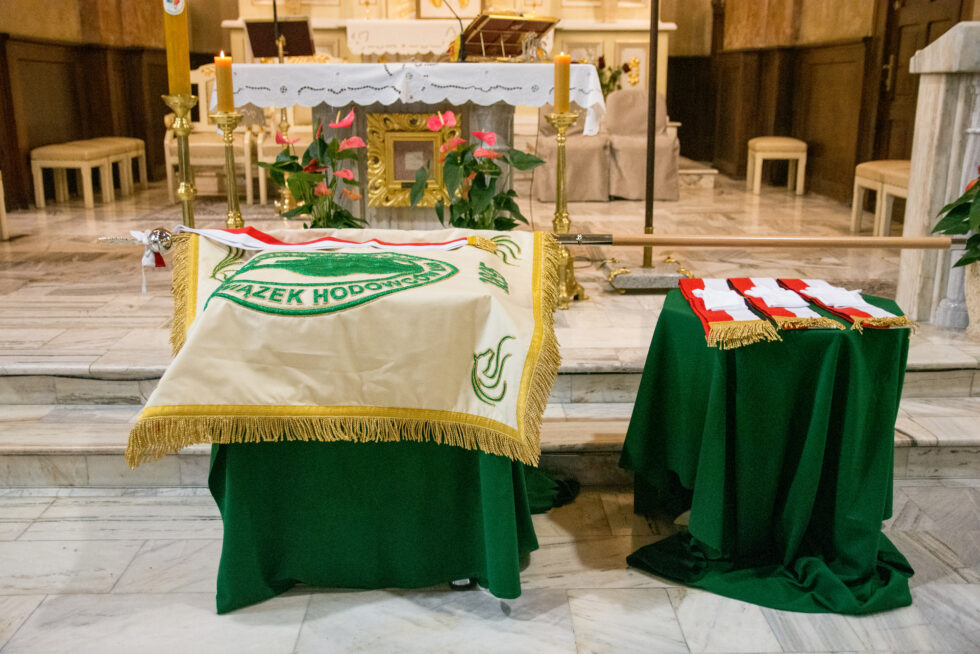 Tuż po mszy, do wspólnego zdjęcia ustawiły się poczty sztandarowe, nowy sztandar i goście. Była to wyjątkowa okazja, aby uchwycić w kadrze nie tylko hodowców koni, ale też sztandary, które pełnią znaczącą rolę w kultywowaniu tradycji.