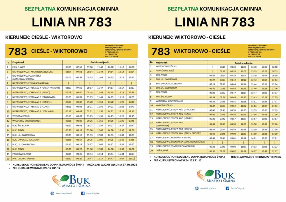 Na prośbę mieszkańców, na linii nr 783 zostały dodane dwa przystanki: na strefie przemysłowej Niepruszewo, Strefa AG 5 (ZINKPOWER) Niepruszewo, strefa AG 6 (DAPLO).