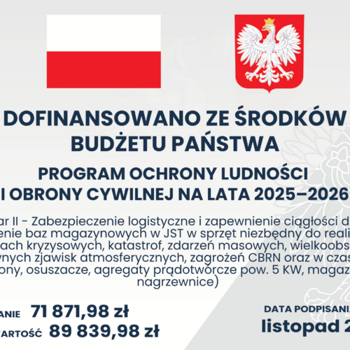 Uzyskane dotacje pozwoliły na zrealizowanie ważnego kroku w zakresie przygotowania zasobów na potrzeby ochrony ludności i obrony cywilnej, a tym samym zwiększenia bezpieczeństwa Gminy.