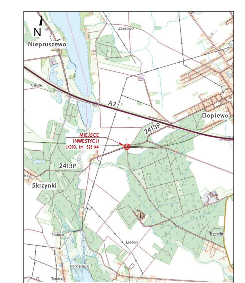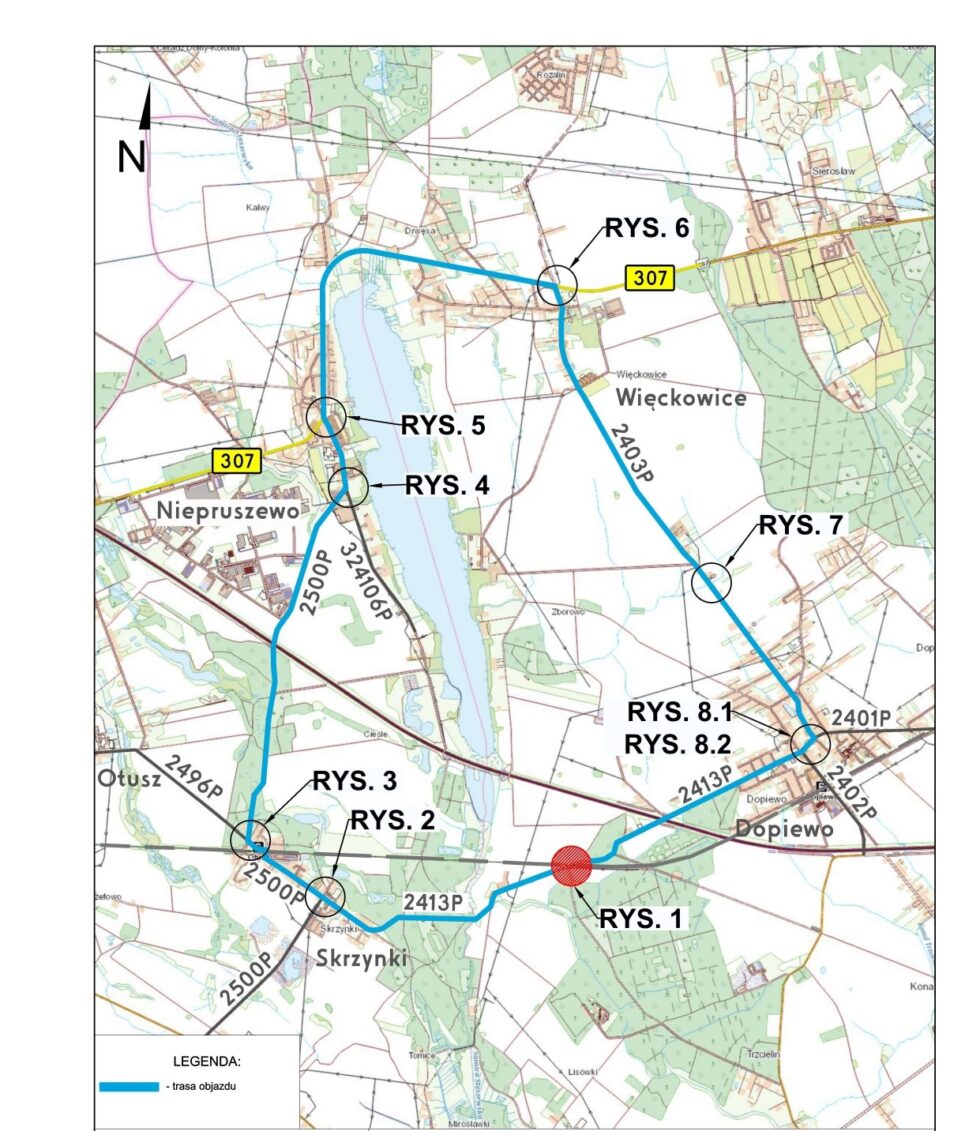 W związku z remontem przejazdu kolejowo-drogowego na lk 003 w km 326,144 Warszawa Zachodnia – Kunowice obręb geodezyjny Dopiewo, w ciągu DP 2413P, PPU Dromo Sp. z o.o. informuje, że w nocy 19/20.03.2026r. w godzinach od 22:00 do 02:00 nastąpi awaryjne zamknięcie w/w przejazdu. Objazd poprowadzony zostanie zgodnie z załączonym schematem.