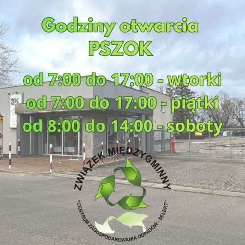 Związek międzygminny „centrum zagospodarowania odpadów – selekt” informuję o dniach i godzinach otwarcia Punktu Selektywnej Zbiórki Odpadów Komunalnych.