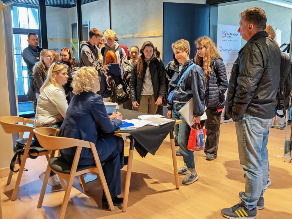 Uczniowie wzięli też udział w warsztacie autoprezentacji rozwijającym kompetencje miękkie uczniów przygotowujących się do wejścia na rynek pracy – „Zaprezentuj się w 90 sekund”, który poprowadziła Patrycja Walenczak z Uniwersytetu WSP Merito w Poznaniu. Była okazja, aby dowiedzieć się: jak mówić o swoich umiejętnościach i doświadczeniu, jak przygotować się do rozmowy z pracodawcą, jak zaprezentować się podczas spotkań z przedstawicielami branży.