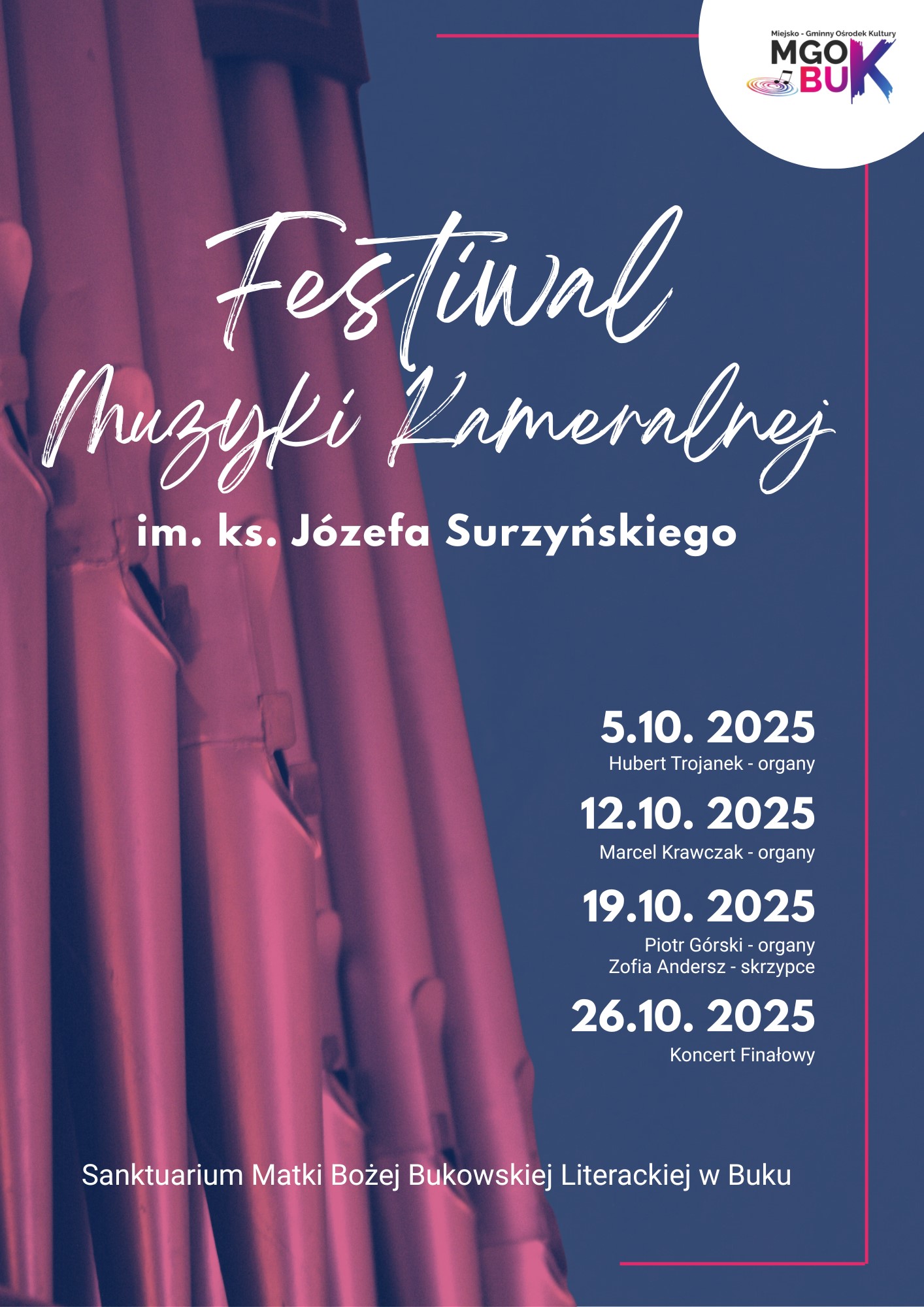 W dniu 26 października br. o godz. 16:00 zapraszamy do Sanktuarium Matki Bożej Bukowskiej Literackiej na koncert finałowy Festiwalu Muzyki Kameralnej im. ks. Józefa Surzyńskiego.
