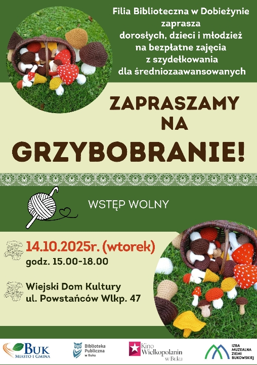 Filia Biblioteczna w Dobieżynie zaprasza w dniu 14 października br. o godz. 15:00 dorosłych, młodzież i dzieci na zajęcia z szydełkowania. Szczegóły na plakacie.