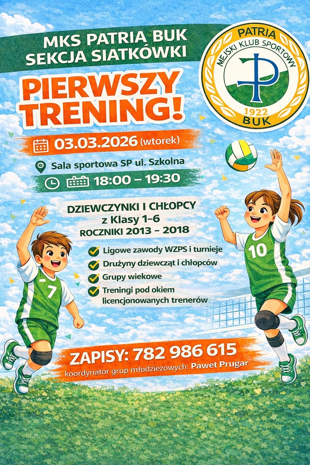 3 marca odbędzie się pierwszy trening siatkówki w sali sportowej. Szczegóły na plakacie